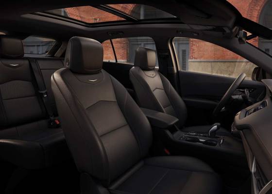 The XT4's interior is comfortable and welcoming, with a sleek dashboard, rounded controls, and pleasant interior color choices. The Luxury trim comes with light platinum leatherette seats with metal and jet black interior accents. The Premium Luxury's leather seats are available in several colors and with mini-perforated inserts. The Sport has black leatherette, but leather is available, including an exclusive light wheat seat color with red accents.