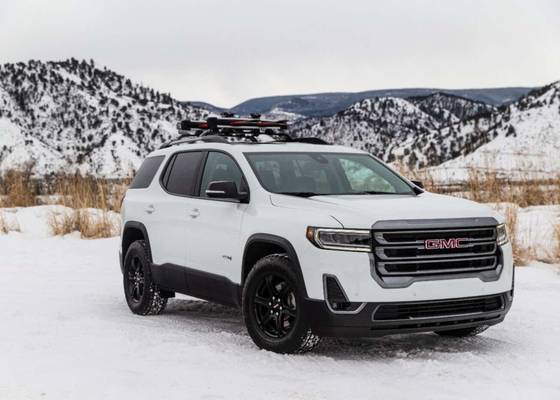 The AT4 ($42,595) is the off-road version of the Acadia. It has a unique all-wheel-drive system that automatically assures the best traction possible. Other off-road-oriented features are hill descent control, hill-start assist, and 17-inch alloy wheels with all-terrain tires. It is powered by a 310-horsepower 3.6-liter V6 backed by a nine-speed automatic transmission.