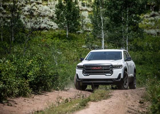 The GMC Acadia provides two engine choices. The base engine is a 258-hp 2.0-liter turbocharged four-cylinder, which comes standard in the SLE and SLT models. The AT4 and Denali models get a more powerful 310-hp 3.6-liter V6. Both of the Acadia's engines are matched to nine-speed automatic transmissions. The engines provide more-than-adequate performance, but none stand out amidst the crowd of powertrains — including some hybrids — that abound in the midsize-SUV segment. The AT4's torque-vectoring all-wheel drive improves the vehicle's off-road performance, but it doesn't match the functionality of a vehicle equipped with a 4x4 system that has a low range.